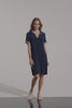 - This silky knit trapeze dress is a perfect blend of refinement and comfort, with its ribbed polo collar and short sleeves. Inseam pockets keep things practical, while the flowy shape adds a modern edge.